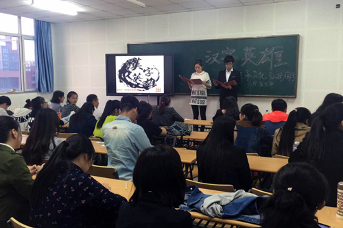 为增强同学们对中国文化的兴趣,提升大学生汉字书写能力,外国语学院学生会于4月24日举办“汉字英雄大赛”。